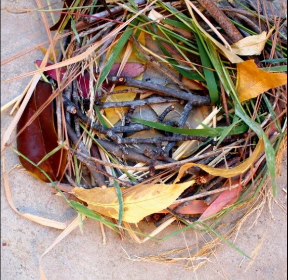 • It is very important that the ‘nest’ base has drainage holes. We do not want it to fill up with water as soon as it rains. Try to find a container that you can put holes into if you cannot find one that is already holey enough.